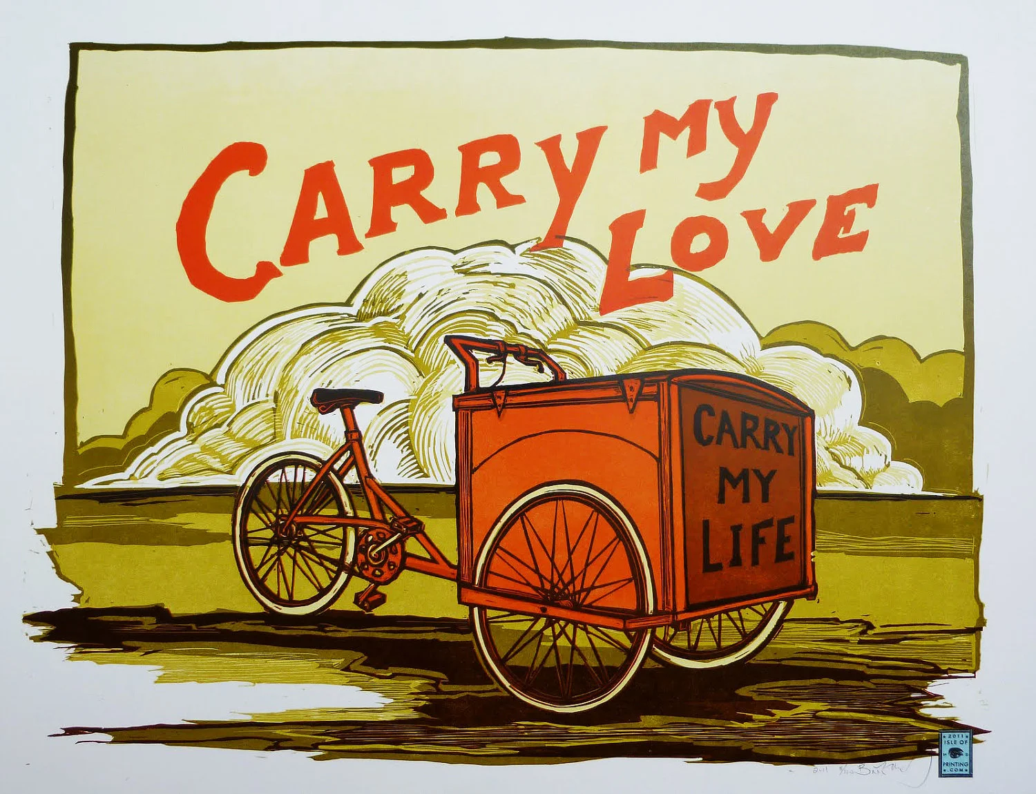 Isle of Printing is buckled firmly to the belt of Nashville, Tennessee U S of A. We specialize in custom letterpress Art, design, posters, illustration, and general pressed paper accoutrements. All of our designs and illustrations are handset and hand carved using traditional letterpress equipment (circa 1900). Each print is run through our presses by hand.