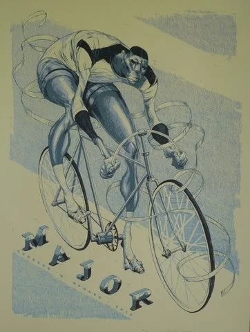 After receiving his BFA in Illustration from Syracuse University, Rich Kelly returned home to pursue a career as a freelance illustrator. He drew and painted everyday and eventually came to work on major editorial and advertising projects for various local and national clients. He now lives and works in Chicago where he strives to make fresh, relevant imagery. His Screens ‘N’ Spokes print is an homage to the great cyclist Marshall “Major” Taylor, who became the first African-American world champion in 1899.