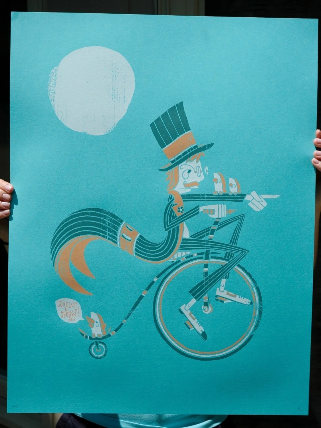 In its third year, the Screens 'N' Spokes benefit art show is up at Mugshots CoffeeHouse in the Fairmount Section of Philadelphia, PA (through August 31) and Mugshots CoffeeHouse in Manayunk (through Oct. 4)