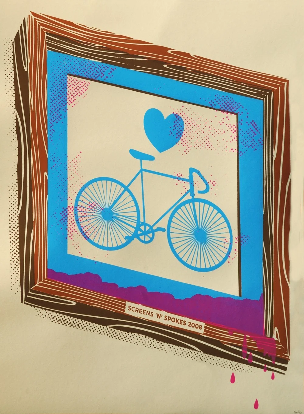 In its second year, the Screens 'N' Spokes benefit art show is up at Mugshots CoffeeHouse and Chapterhouse Cafe & Gallery in Philadelphia, PA and MilkBoy Coffee in Ardmore, PA (through Sept. 30)